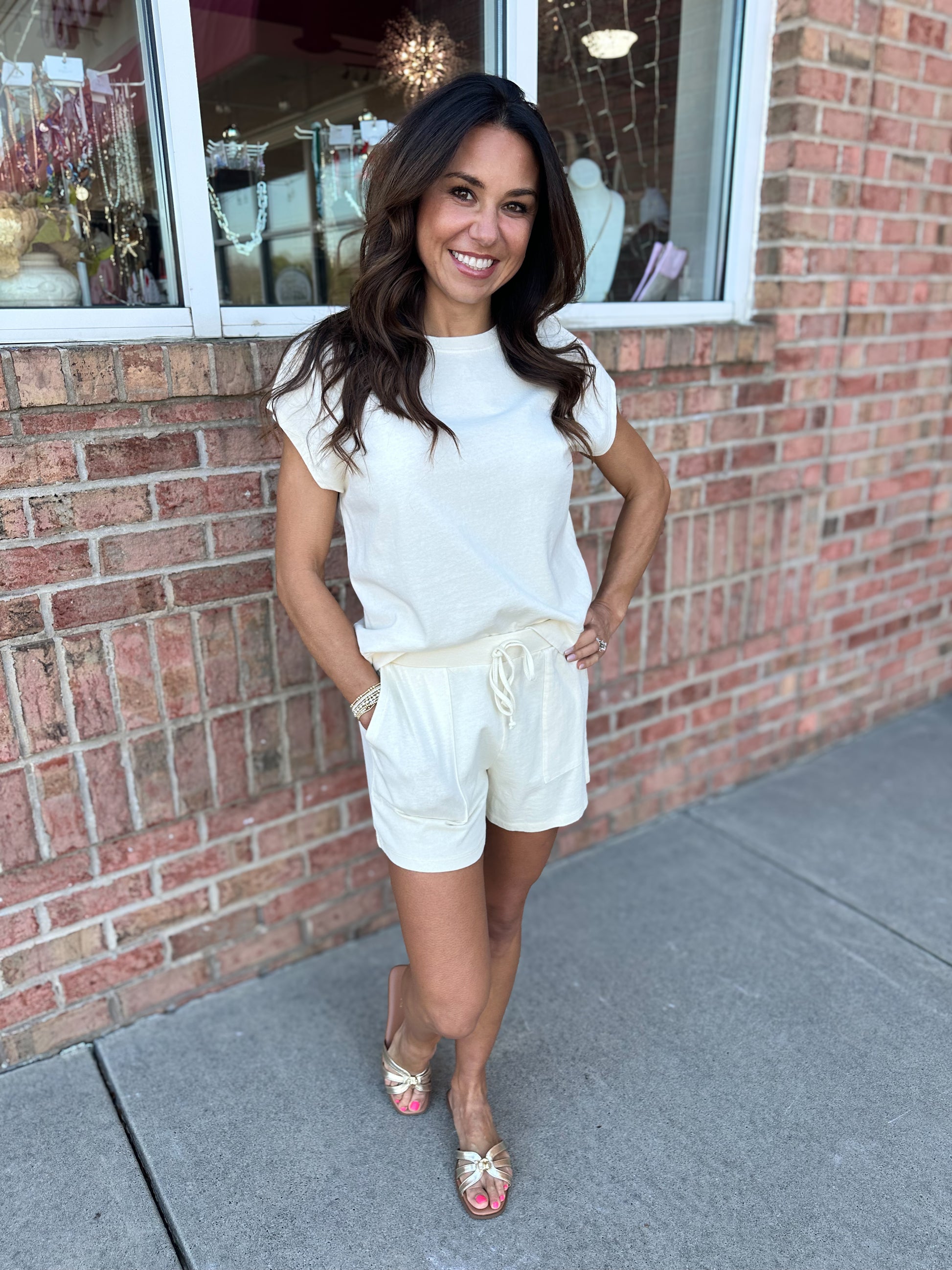 Cozy up in the Abby 2 Piece Set—your new go-to for effortless comfort! This playful duo features a sleeveless crew neck top with ribbed knit detailing at the hem, paired with mid-rise shorts that hit just right. Perfect for lounging at home, running errands, or those days when comfort is non-negotiable. The soft ribbed texture adds a touch of polish while keeping things relaxed and breezy. Mix, match, or wear together—either way, you're winning the comfort game.