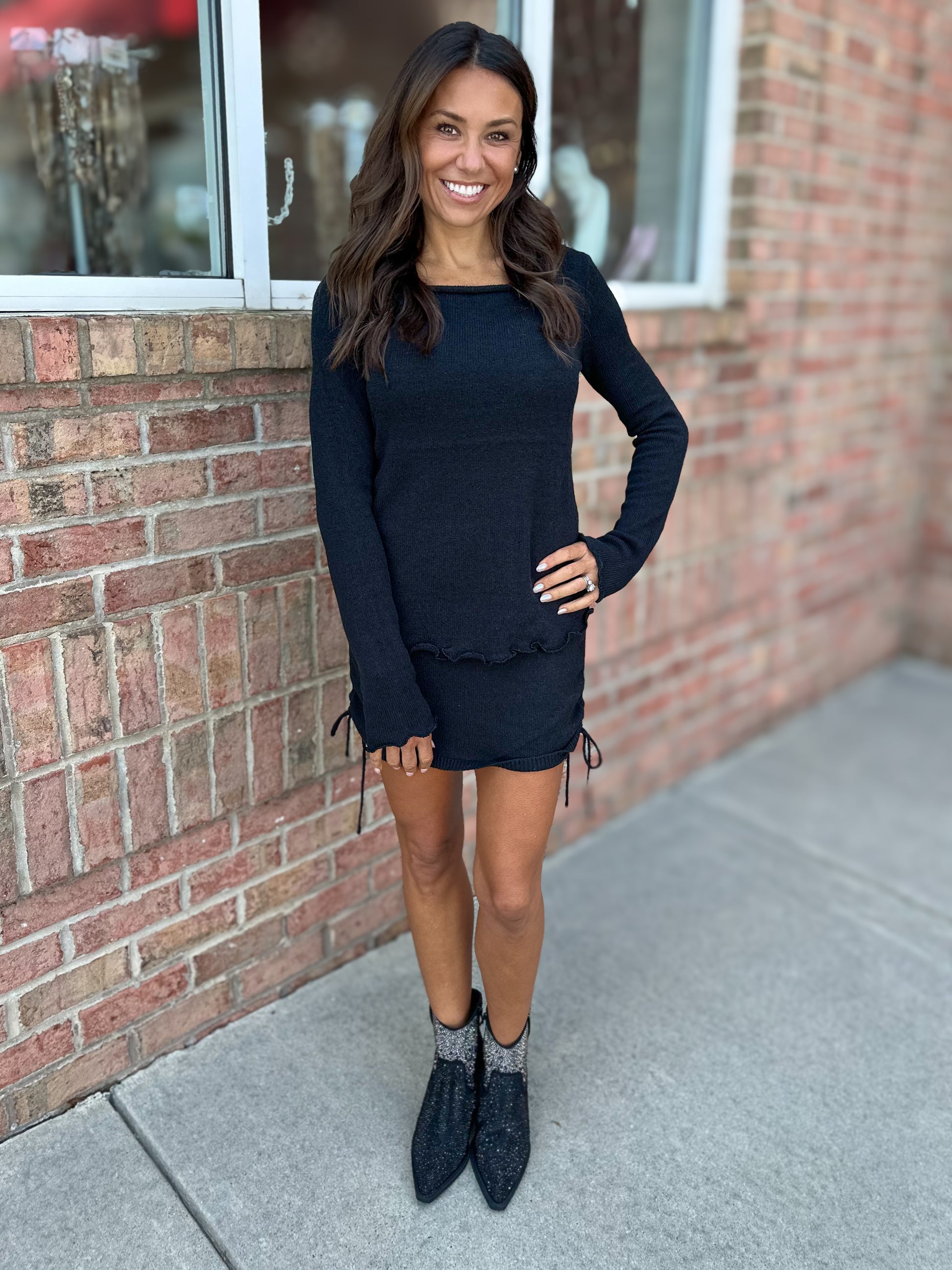 This cozy knit set includes a fun skirt and matching top, perfect for your everyday adventures.