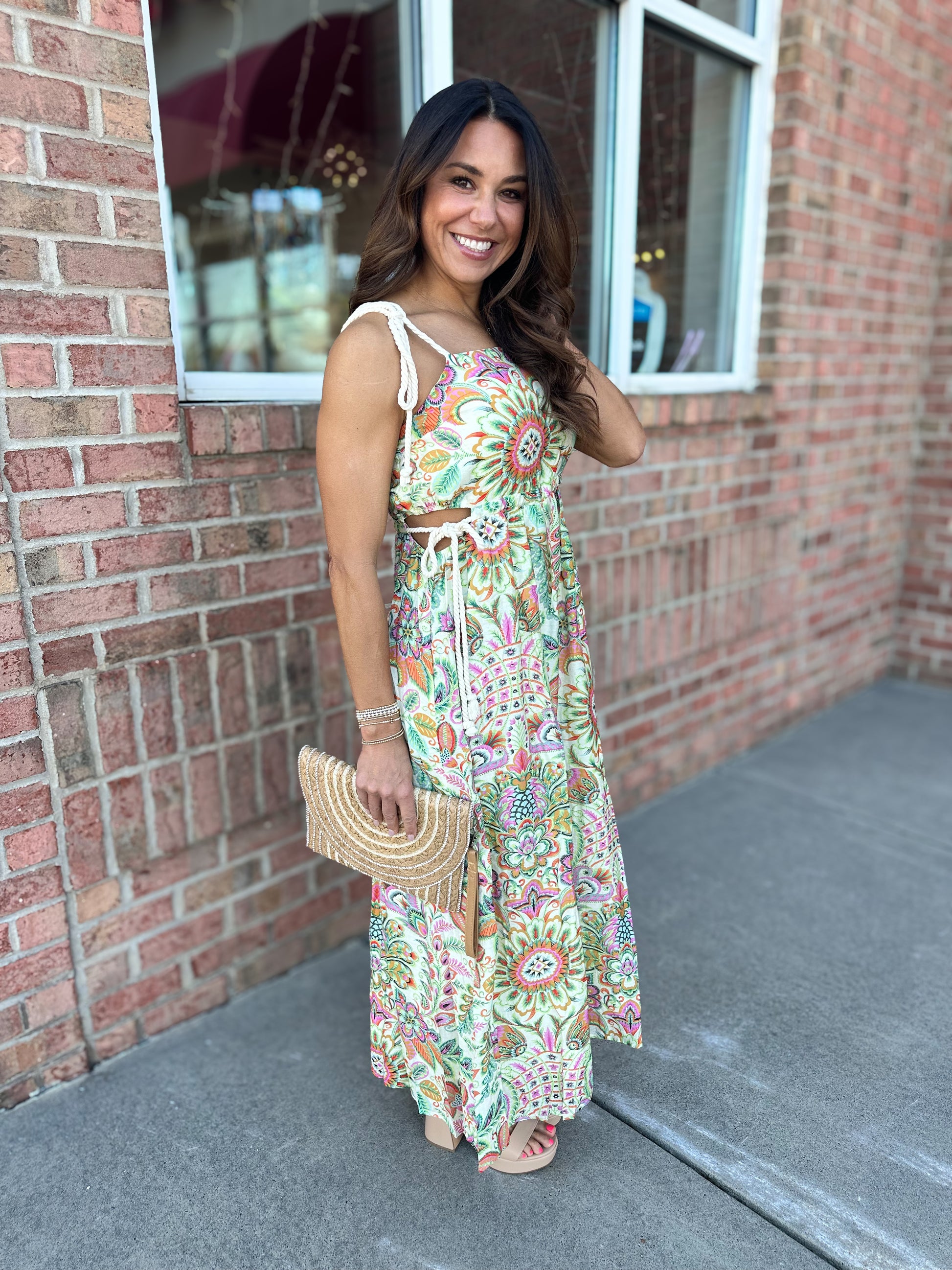 Get ready to unleash your inner beach bum with the "It's My Day In The Tropics" maxi dress! Featuring tropical boho prints and sassy rope tie straps, this dress is perfect for twirling on sandy shores or pretending you’re sipping piña coladas (even if it’s just iced tea). Dress it up or down, just don’t forget your sun hat!