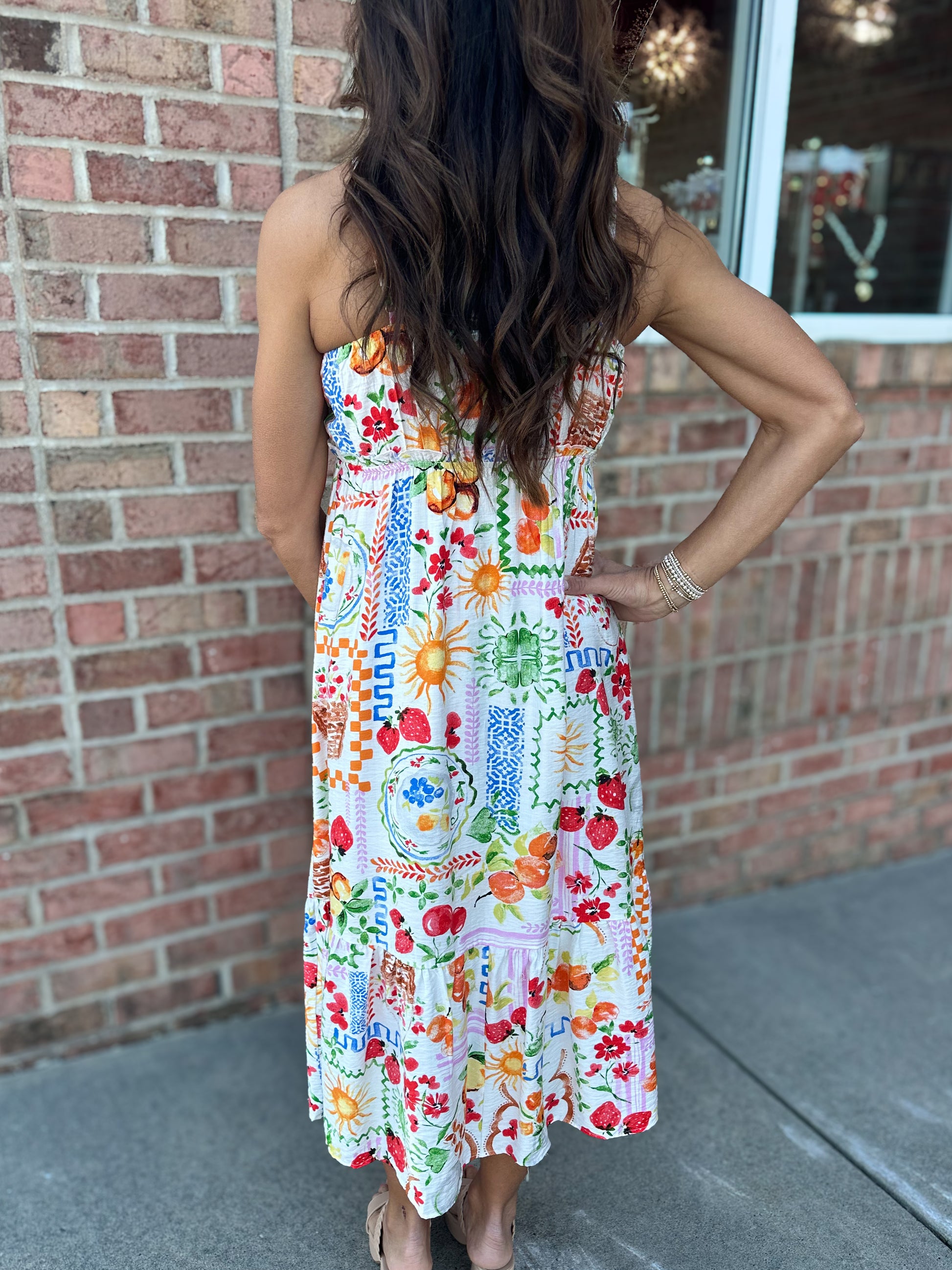 Get ready to strut your stuff in the "Meet Me Later" midi dress! With its playful spaghetti straps and ruffle hem, you’ll be fruit-tastic, channeling summertime vibes no matter the season! Perfect for those “I can’t even” moments when you want to look fabulous without trying too hard! 🍓✨