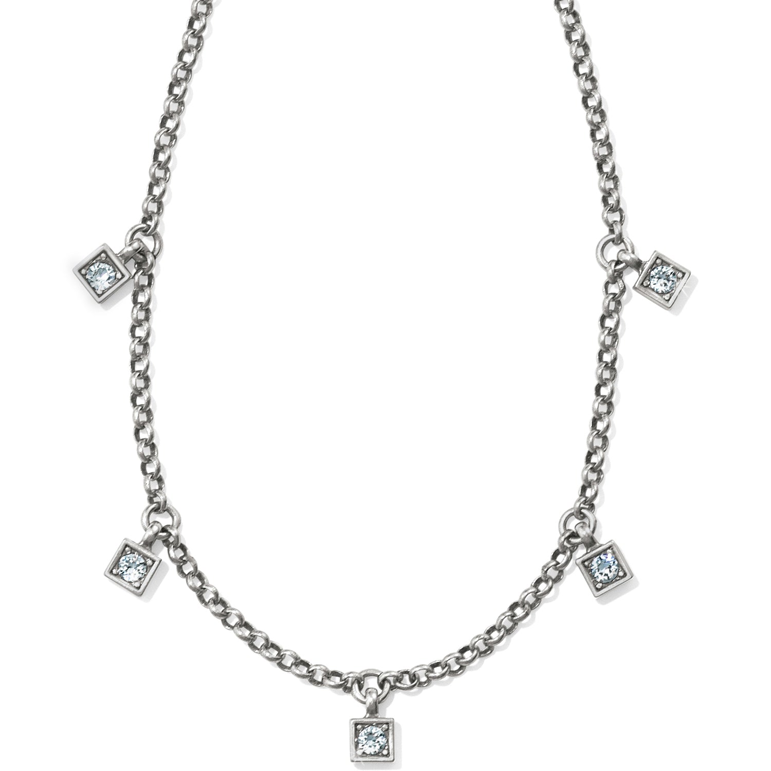 Stations of geometrically-framed, prong-set fine quality crystal create a look that is both contemporary and understated, hanging from a simple cable chain. Great for layering.