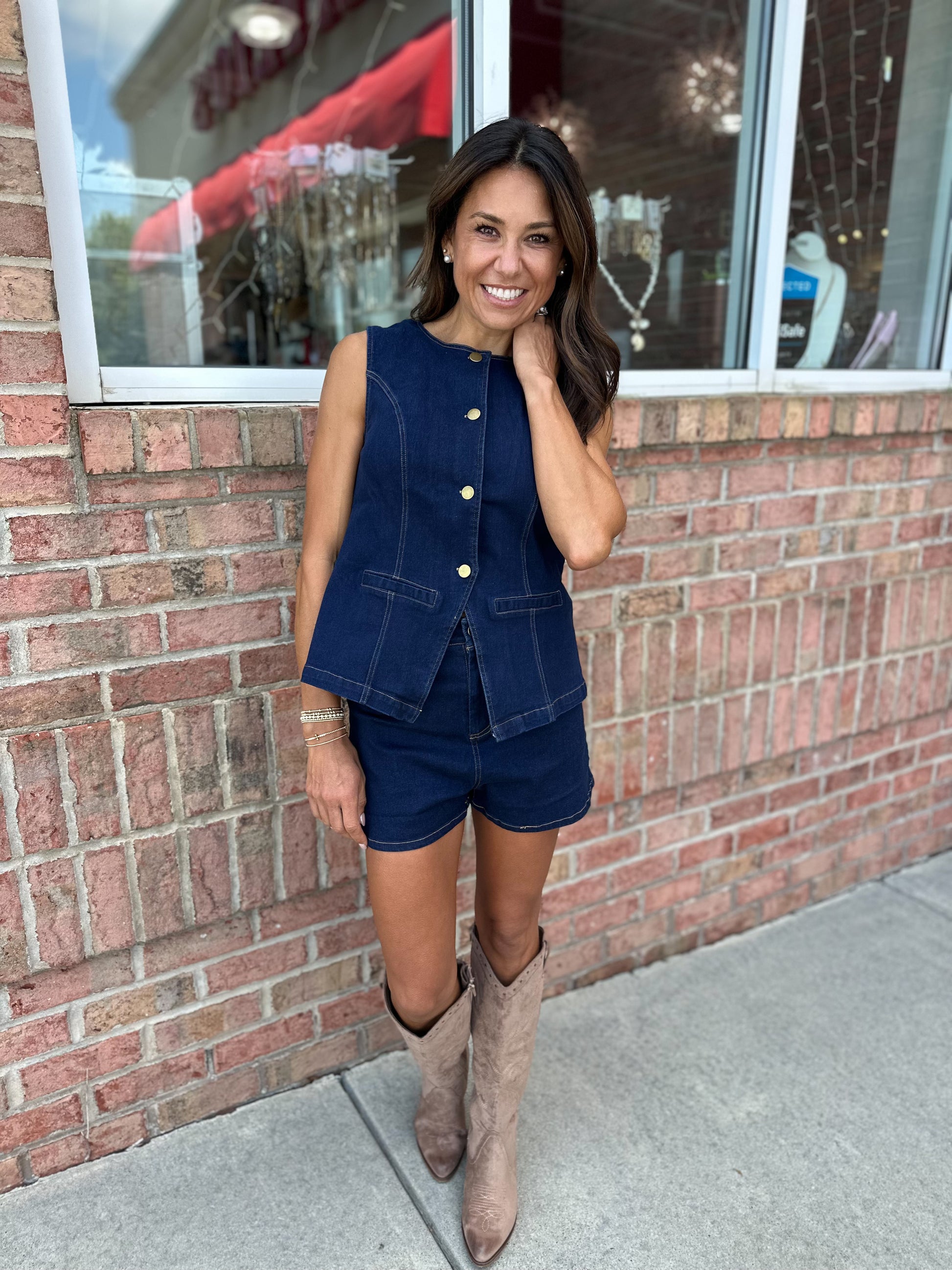 Elevate your style with the On My Terms Shorts in dark denim stretch fabric, designed to complement the On My Terms Blazer Vest perfectly. These tailored shorts offer a refined silhouette with comfortable stretch, creating a polished yet effortless look ideal for both day and evening wear. Paired together, they deliver a cohesive, sophisticated ensemble that exudes confidence and modern elegance.