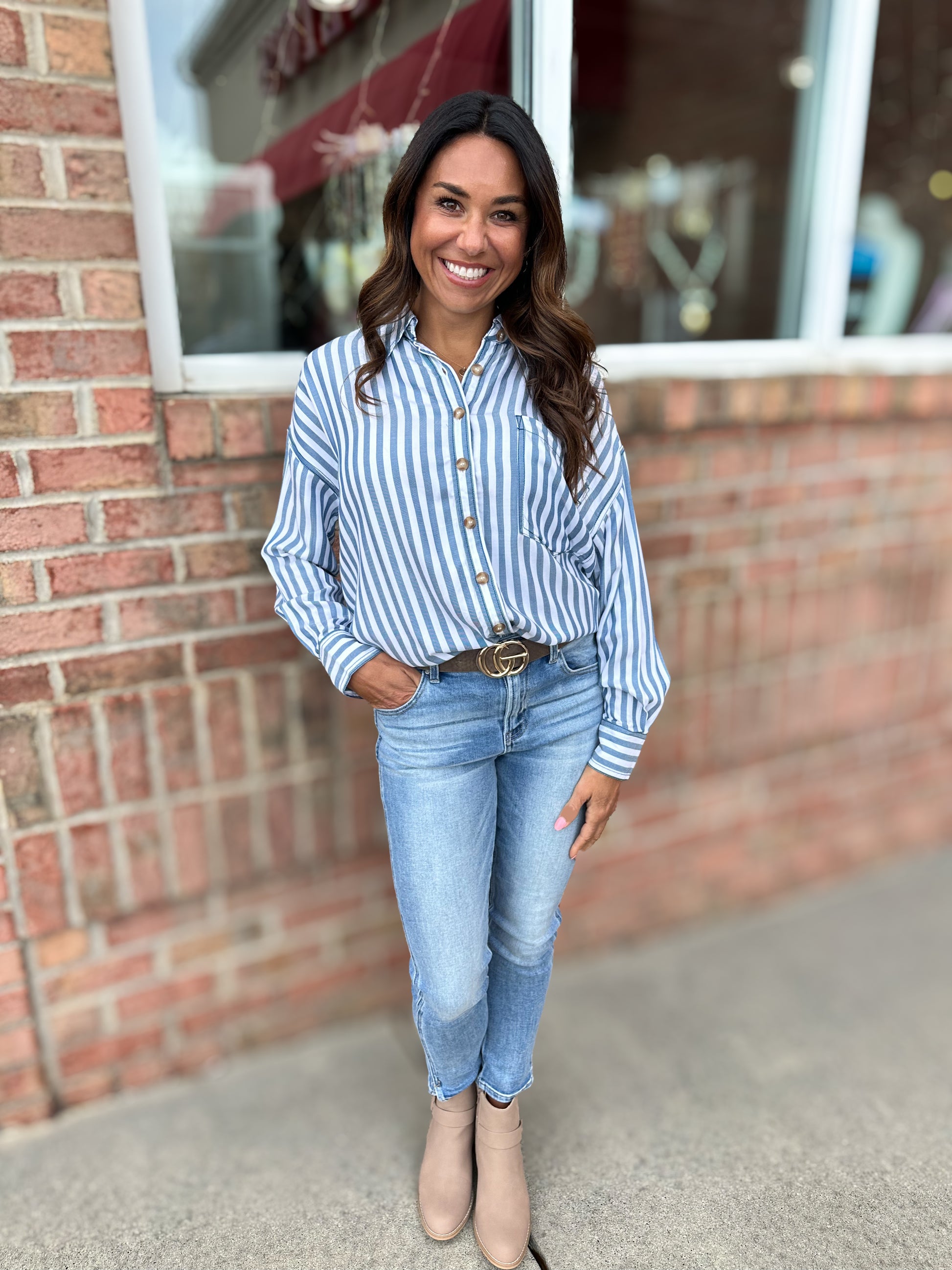 Slip into this charming striped button-down with a classic collar and long sleeves—the perfect piece for adding a dash of personality to your everyday rotation. Whether you're dressing it up or keeping it casual, this versatile shirt delivers effortless style with a wink and a smile.